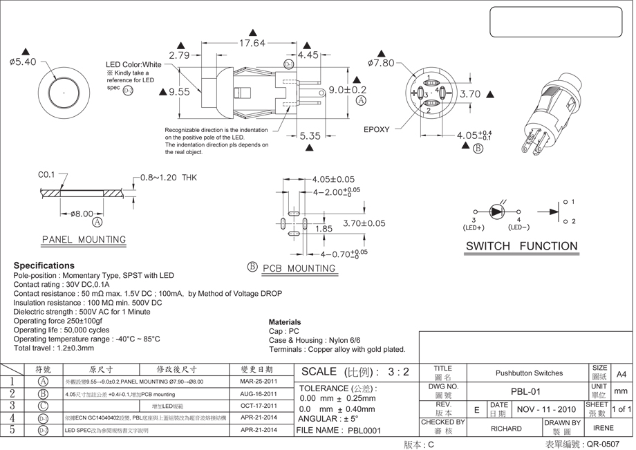 PBL 帶燈開關